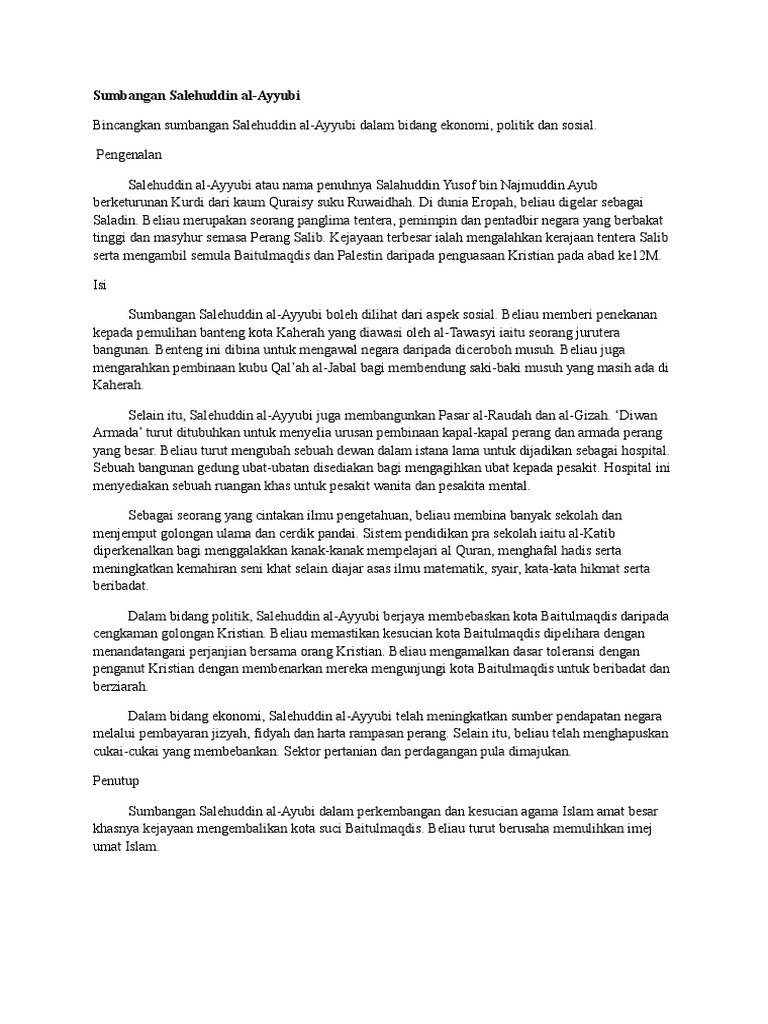 Pada mulanya Salahuddin kurang begitu dikenal oleh masyarakat namun ketika Nuruddin Zanki menguasai Damaskus ayahnya memperkenalkannya kepada Nurudin Zanki. EN WAN MOHD SYARIFUDDIN BIN WAN ISMAIL 1Page ISI KANDUNGAN TAJUK MUKA SURAT ISI. Lihat profil Salahuddin Al Ayyubi di LinkedIn komunitas profesional terbesar di dunia.